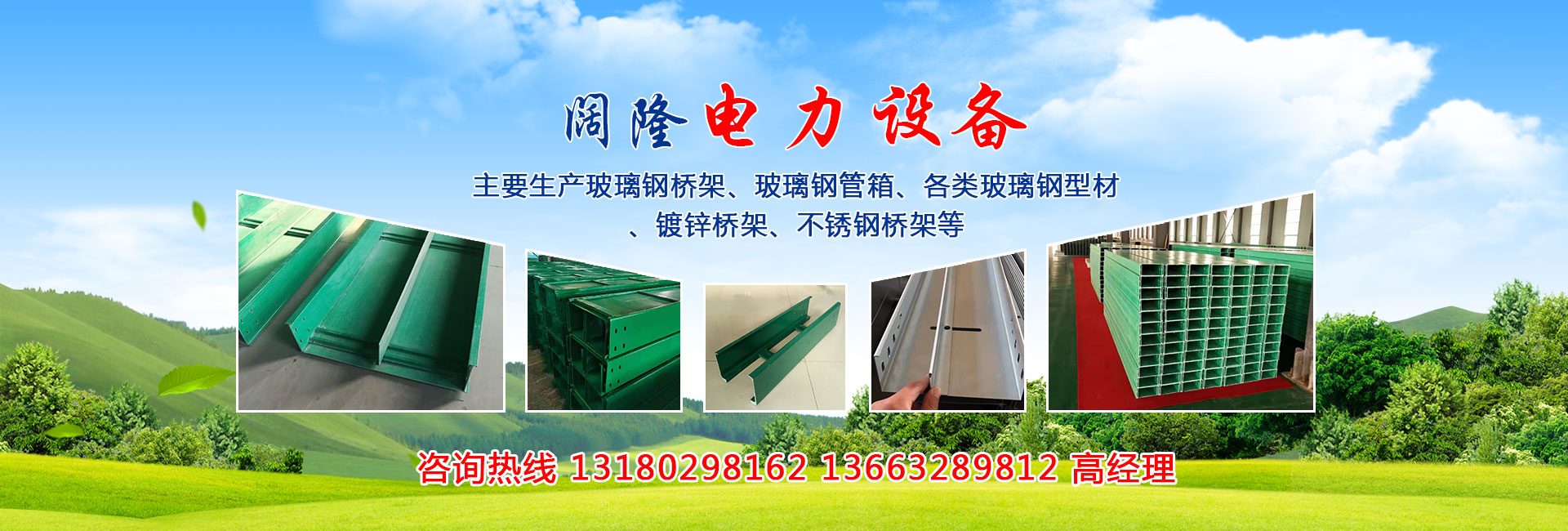 河北闊隆電力設(shè)備有限公司位于京津冀交界的位置,座落在美麗的衡水湖畔,公司注冊(cè)資金五千萬(wàn)元,是一家大規(guī)模的玻璃鋼制品生產(chǎn)基地,公司主要生產(chǎn)玻璃鋼橋架、玻璃鋼管箱、各類玻璃鋼型材、鍍鋅橋架、不銹鋼橋架等,公司采用現(xiàn)代化管理方法,以質(zhì)量控制求生存,以擴(kuò)大品種謀發(fā)展;產(chǎn)品銷往國(guó)內(nèi)多個(gè)省份,應(yīng)用領(lǐng)域廣泛,得到了廣大客戶的贊揚(yáng)和認(rèn)可;我們從售前咨詢、設(shè)計(jì)、生產(chǎn)到售后,每個(gè)環(huán)節(jié)都做到精準(zhǔn)把控;我們客服24小時(shí)在線,及時(shí)為您解疑答惑,讓您用的放心。 ...